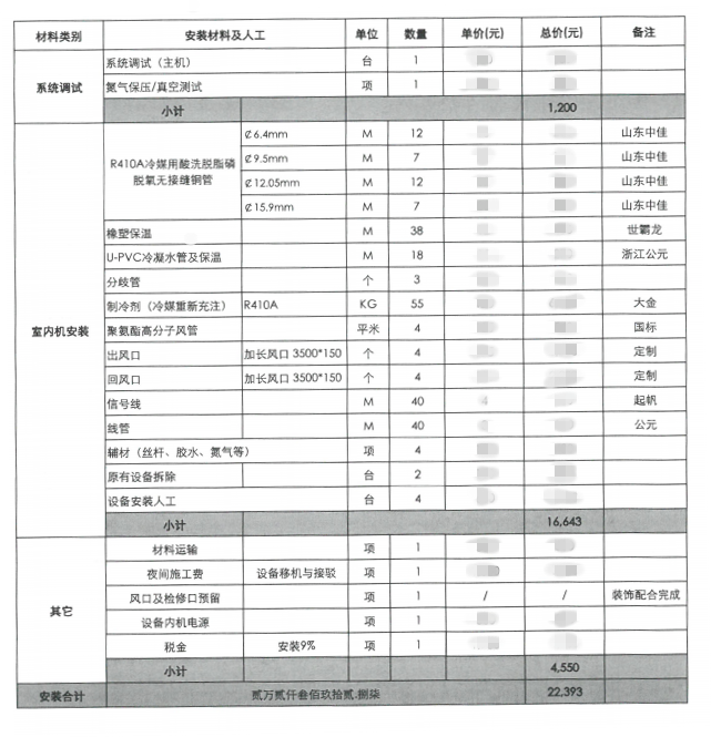 項(xiàng)目安裝配置價格表